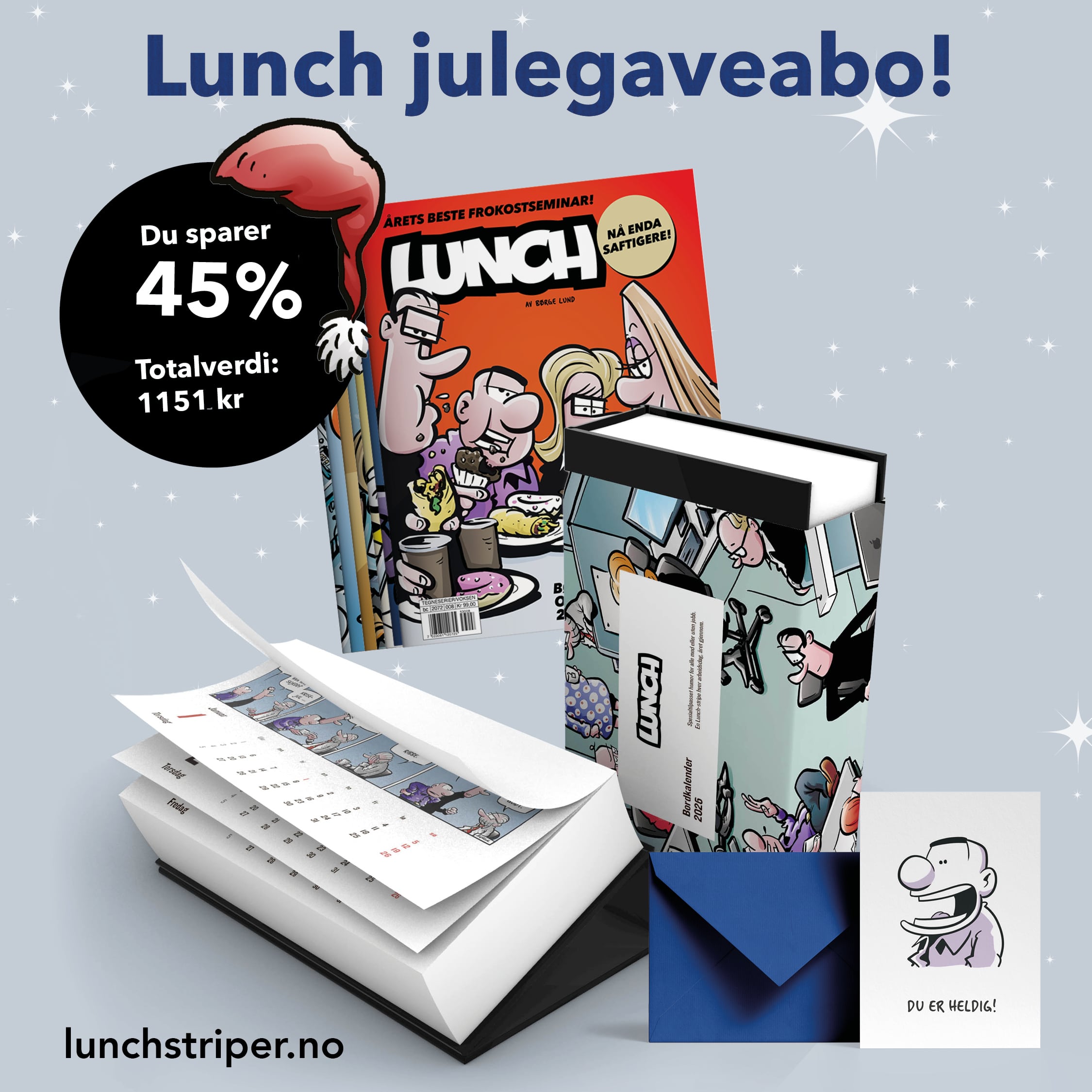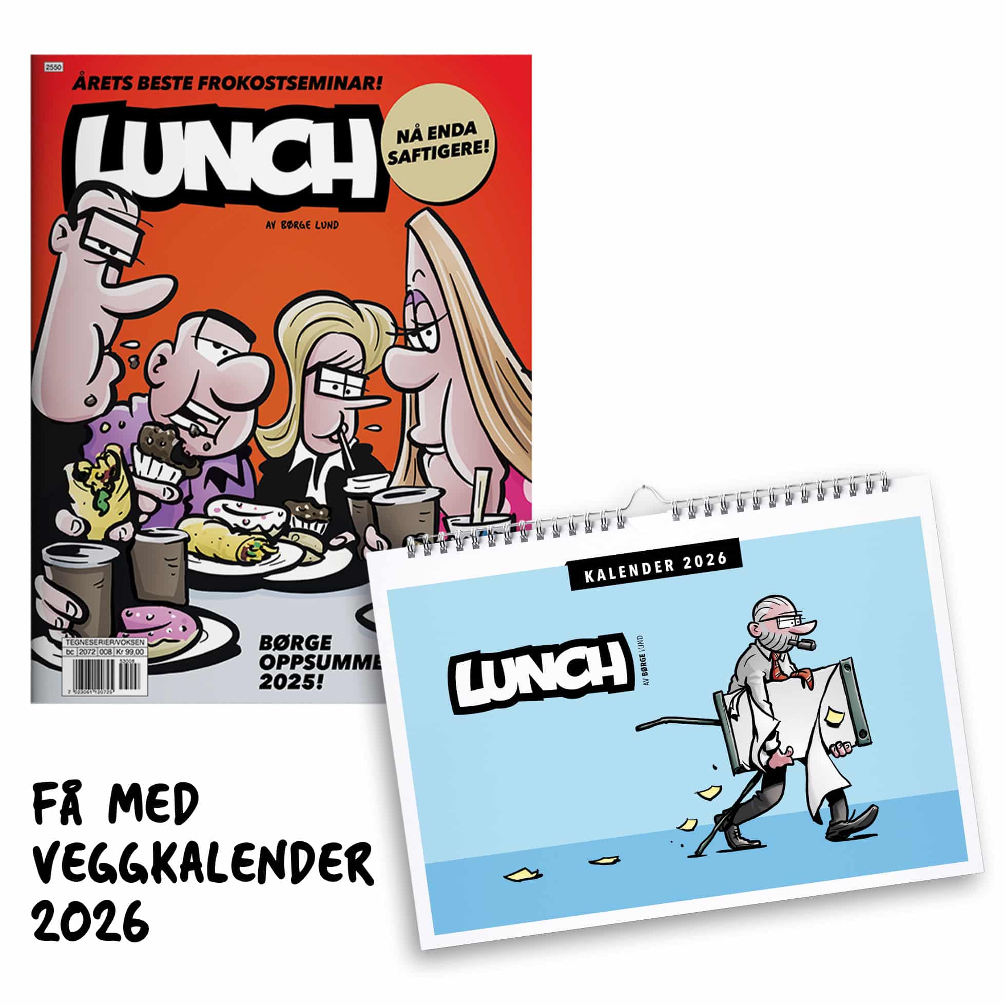 Lunch kommer med biseriene: «Intet nytt fra hjemmefronten» av Therese Eide, «Dunce» av Jens K. Styve, Tegnehanne i Tusjkollektivet, Nora Dåsnes i Tusjkollektivet, «Lille Berlin» av Ellen Ekman, David Skaufjord, «Illustrert kommentarfelt» av Trond Johan Stavås og «Fritt» av Johan H. Andresen og Bjørnar Meisler